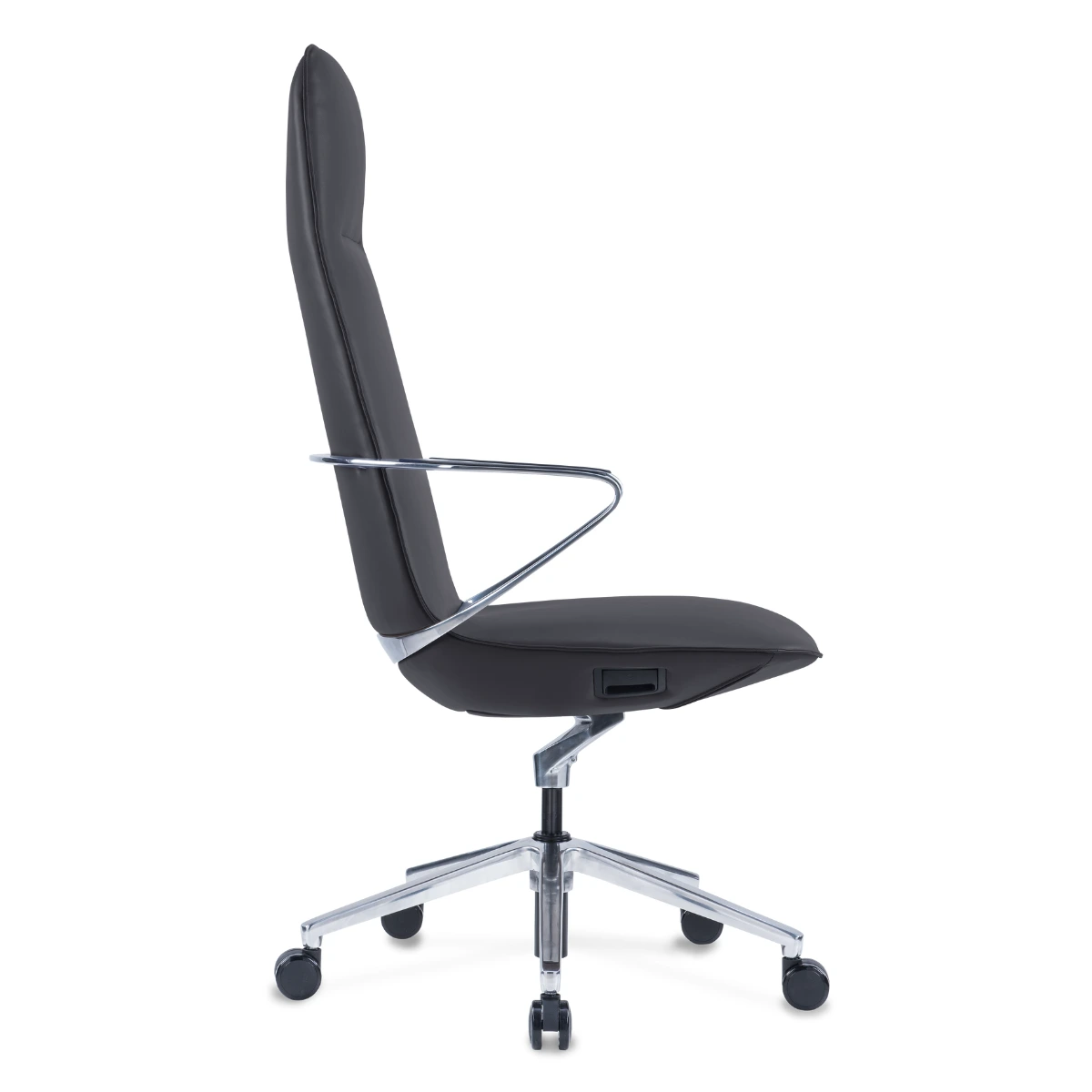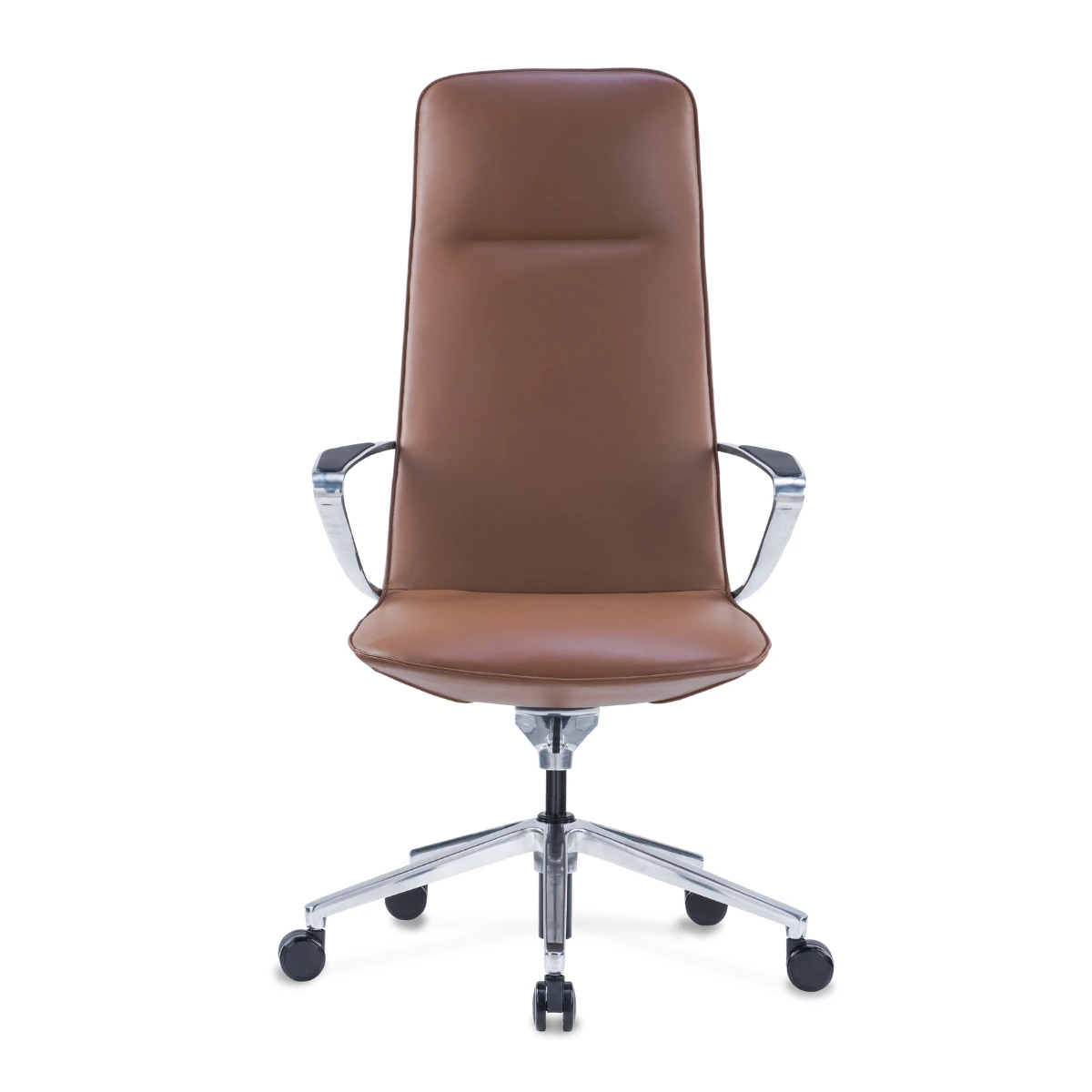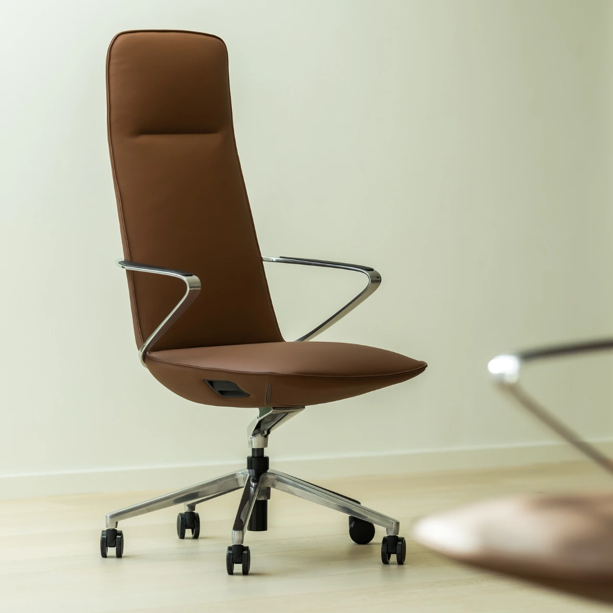 The Amola High meeting chair features a contemporary design with sleek lines and an ergonomic backrest for optimal comfort. This stylish chair combines a sturdy metal frame with soft, easy-to-maintain upholstery. Available in black and cognac, the Amola High fits perfectly into any meeting room.